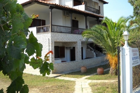 Στο ισόγειο, έχουμε δύο (2) μεγάλα διαμερίσματα. Κάθε διαμέρισμα διαθέτει υπνοδωμάτιο με διπλό κρεβάτι, ένα μονό κρεβάτι και ξεχωριστό καθιστικό με διπλό κρεβάτι, ένα μονό κρεβάτι και πλήρως εξοπλισμένη κουζίνα και μπάνιο. Κάθε διαμέρισμα διαθέτει μια μεγάλη βεράντα με τραπεζαρία και μια κούνια.